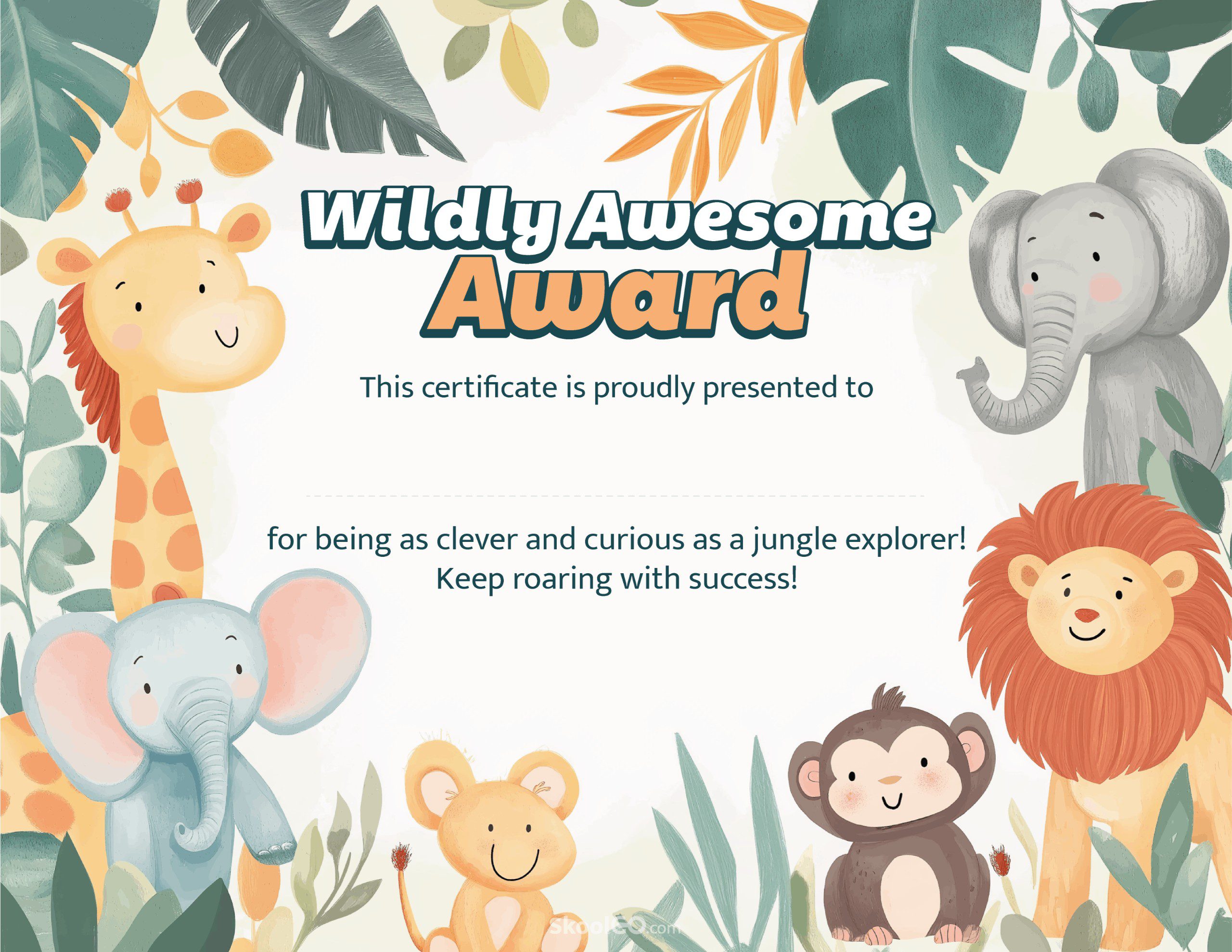 Wildly Awesome Award certificate template with jungle animals for kids classroom reward printable PDF